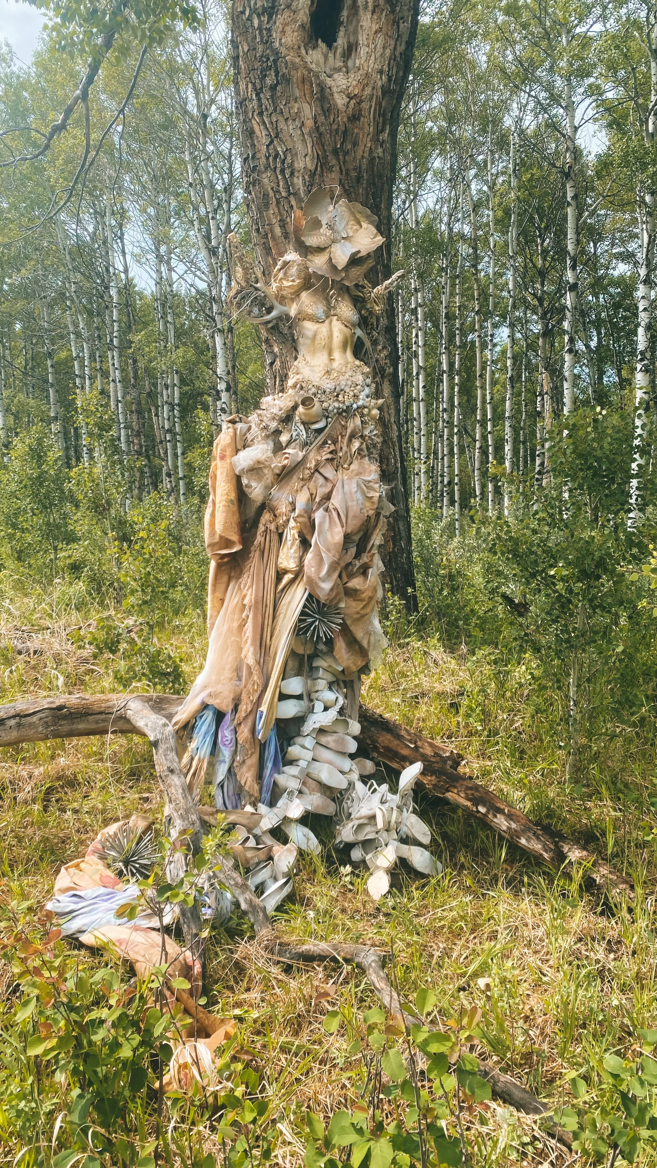 Foothills County is an immersive experience created by the artist in the wake of her recent exhibition ‘Sheep River’ this past July. A prolific creative force, the artist has created an entirely new body of work for this ebullient display, ranging from a series of photographs based on performances within the region to the evocative nature of her mixed media 2D works, installation and sculpture. The materials in this collection were all discarded, unwanted or rejected; from the clawfoot tub she hauled through the forest with host/patron and friend Jay Cross, to the tractor rim she individually transported into a barley field and the garments, objects and even paint used to capture each and every individual shot.